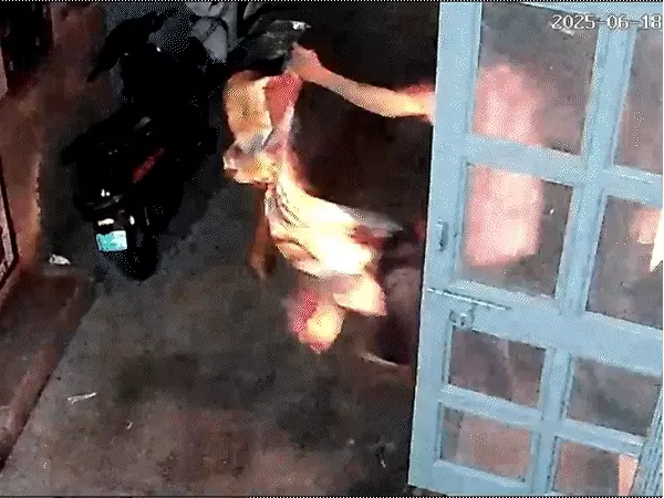 इस जद्दोजहद में बेटे का एक हाथ जल गया। तबीयत बिगड़ने पर और सीने में दर्द होने पर ईसीजी करवाई गई, जिसमें हार्ट में ब्लॉकेज आया। घटना श्रीपुरा इलाके में 18 जून रात सवा 10 बजे के आसपास की है। अब इसका सीसीटीवी फुटेज भी सामने आया है, जिसमें फायरमैन घर की सीढ़ियों से सिलेंडर को लाते नजर आया है।