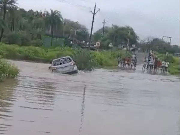 उज्जैन : उज्जैन में बुधवार और गुरुवार को हुई तेज बारिश के चलते नदी-नाले उफान पर हैं। जिले के कई इलाके जलमग्न हो गए हैं। ऐसे में बागेड़ी नदी की पुलिया पार करते हुए खाचरोद के समीप ग्राम नंदयासी में कार बह गई। ग्रामीणों ने कार सवार को बमुश्किल बचाया। घटना का वीडियो भी सामने आया है, जिसमें नदी में बहती कार में सवार भी दिखाई दे रहा है।