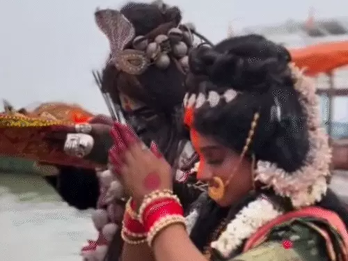 कई भक्त भगवान शिव और पार्वती का रूप धारण करके घाटों पर पहुंचे और सूर्यदेव को अर्घ्य दिया।