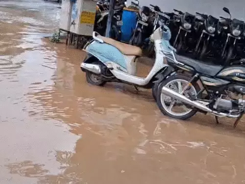 रायपुर में मंगलवार सुबह हुई बारिश से शहर के कई सड़कों पर पानी भर गया।