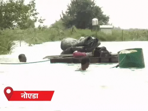 उत्तर प्रदेश : यूपी में लगातार बारिश से नदियां उफान पर हैं। नोएडा में यमुना नदी की बाढ़ से करीब 1000 फार्म हाउस में पानी घुस गया। छपरौली इलाके में बने फार्म हाउस में अचानक पानी भर गया, जिसमें फंसे कई लोग तैरकर बाहर आते नजर आए। जबकि बाकी लोगों को रेस्क्यू किया गया।