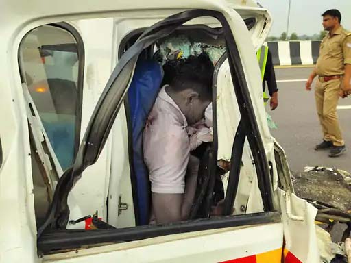 टक्कर इतनी जोरदार थी कि एम्बुलेंस बुरी तरह डैमेज हो गई। ड्राइवर और आगे की सीट पर बैठा व्यक्ति करीब 20 मिनट तक तड़पते रहे। सूचना पर पहुंची स्थानीय पुलिस और यूपीडा की टीम ने दरवाजा तोड़कर दोनों को बाहर निकाला, लेकिन तब तक दोनों की मौत हो चुकी थी। बाकी 4 लोगों को पुलिस ने पास के ष्ट॥ष्ट में भर्ती कराया, जहां इलाज के दौरान 3 और लोगों की मौत हो गई। हादसा एक्सप्रेसवे पर माइल स्टोन संख्या 59.70 के पास हुआ।