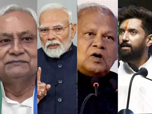 पटना : बिहार में NDA गठबंधन की सीट शेयरिंग को लेकर तस्वीर लगभग साफ हो गई है। मुख्यमंत्री नीतीश कुमार के दिल्ली दौरे के बाद गठबंधन दलों के बीच अंतिम सहमति बन गई है।