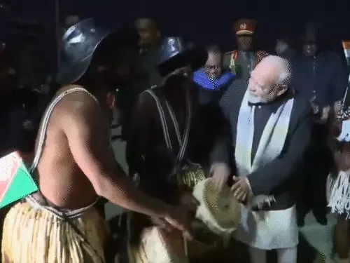 राजधानी विंडहोक के एयरपोर्ट पर लैंड होने के बाद उनका पारंपरिक नृत्य के साथ स्वागत किया गया। इस दौरान पीएम ने कलाकारों के साथ में ढोल भी बजाया।