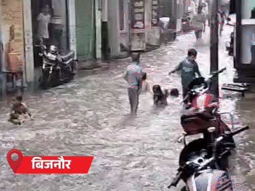 तस्वीर बिजनौर की। यहां रविवार को बारिश के बाद सड़क पर दो फीट पानी भर गया।