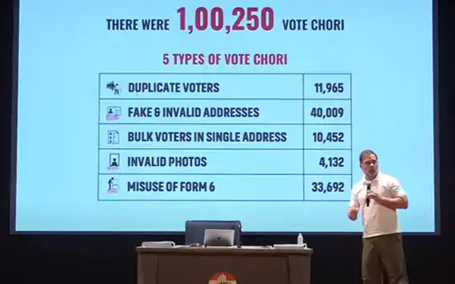 • राहुल ने आगे कहा कि मैं इसे हल्के में नहीं, बल्कि सौ प्रतिशत प्रमाण के साथ कह रहा हूं। जैसे ही हम इसे जारी करेंगे, पूरे देश को पता चल जाएगा कि चुनाव आयोग भाजपा के लिए वोट चुराने का काम कर रहा है। हमें मध्य प्रदेश चुनाव, लोकसभा चुनाव में शक था, महाराष्ट्र चुनाव के दौरान हमारा शक और बढ़ गया।