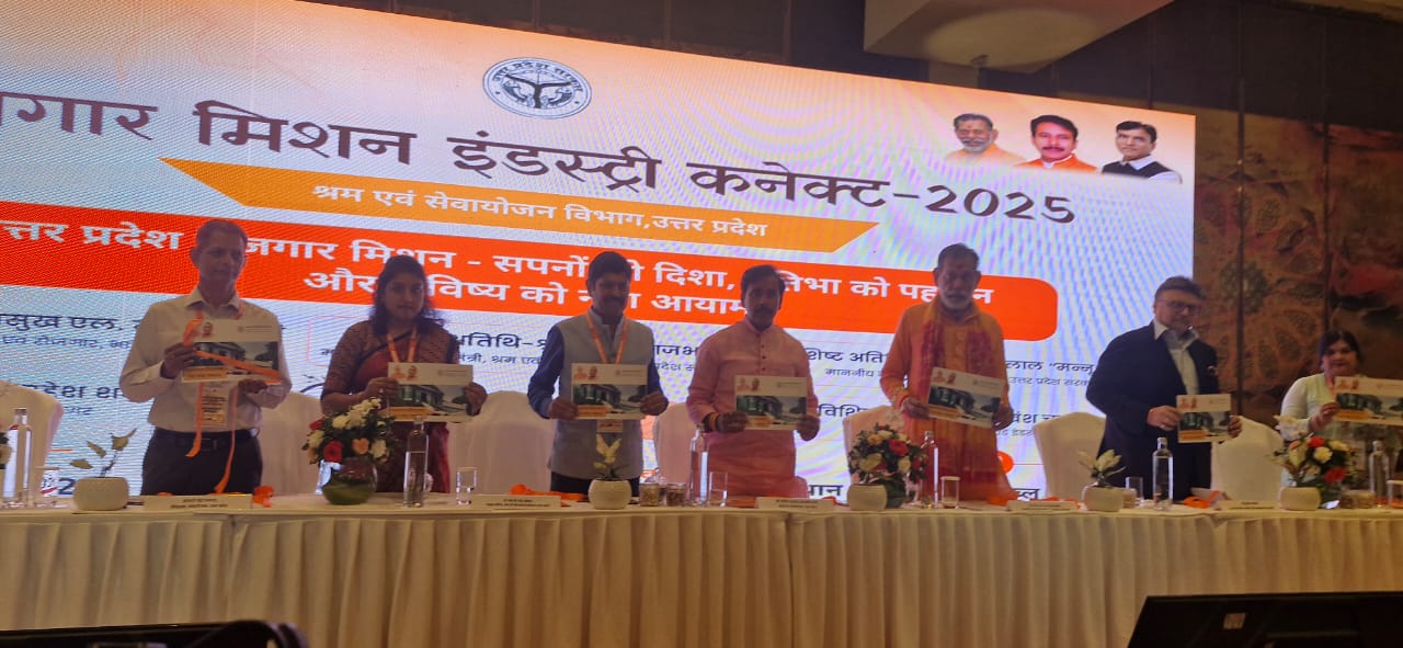 गौतमबुद्ध नगर : ग्रेटर नोएडा स्थित होटल रेडिसन ब्लू में रोजगार मिशन इंडस्ट्री कनेक्ट–2025 कार्यक्रम का आयोजन किया गया। कार्यक्रम का उद्घाटन माननीय कैबिनेट मंत्री, श्रम एवं सेवायोजन, उत्तर प्रदेश अनिल राजभर, माननीय राज्य मंत्री, श्रम एवं सेवायोजन, उत्तर प्रदेश मनोहर लाल “मन्नू कोरी” प्रमुख सचिव, श्रम एवं सेवायोजन, उ.प्र. डॉ. एम.के.एस. सुध्रम, निदेशक, सेवायोजन, उ.प्र नेहा प्रकाश एवं अपर निदेशक, सेवायोजन प्रशिक्षण एवं सेवायोजन निदेशालय, उ.प्र. पीके पुंडीर द्वारा दीप प्रज्ज्वलन कर किया गया।
