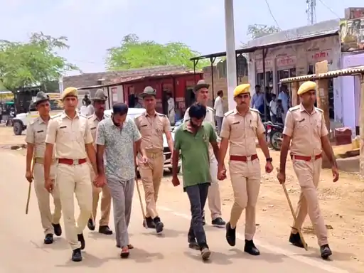 जैसलमेर: विंडमिल के सुरक्षा गार्डों पर फायरिंग कर केबल चुराने वाले 2 वांटेड इनामी भाइयों की पुलिस ने शनिवार को खुहड़ी कस्बे में पैदल परेड करवाई। दोनों भाई चंद्रवीर सिंह (27) व महिपाल सिंह (25) को खुहड़ी थाना पुलिस ने घटनास्थल का मौका तस्दीक करवाया।